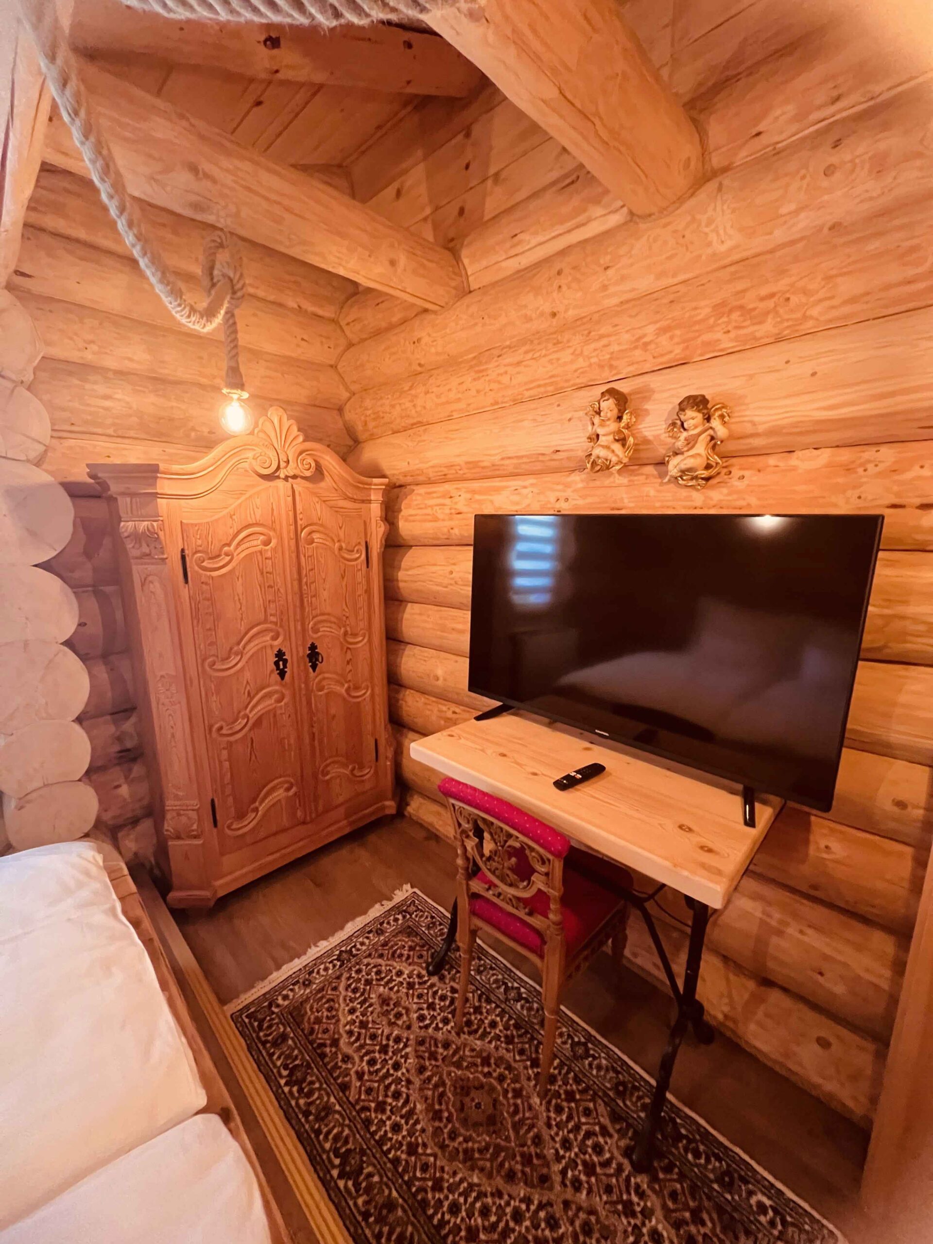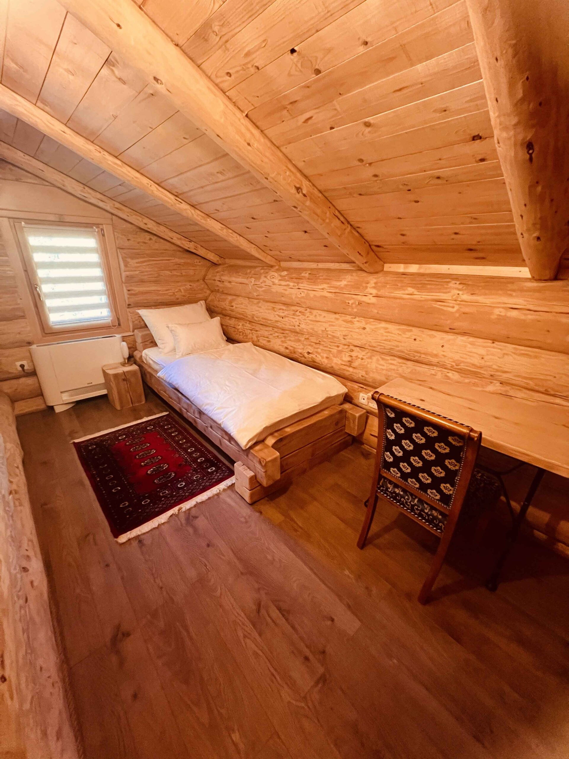 As he was the biggest and most important person in Roman history, so our apartment occupies the largest square footage in the log cabin, with an area of ​​100m2 with a terrace of 6m2.
